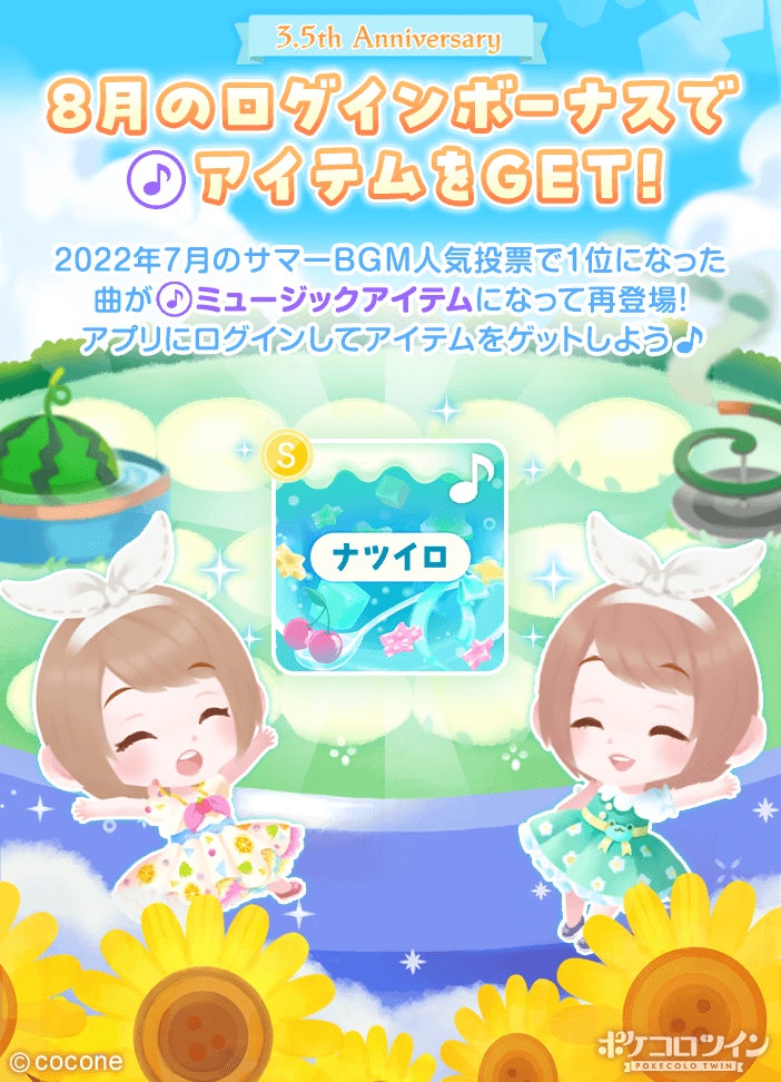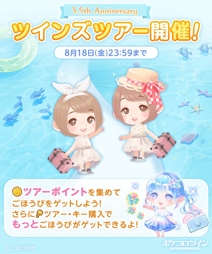8月27日で3.5周年を迎えるスマートフォンアプリ『ポケコロツイン』は、アバターの着せかえやコミュニケーションを楽しむことができます。