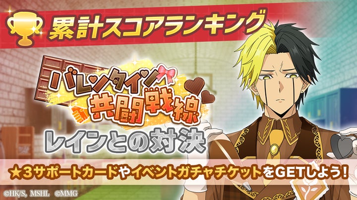 スマートフォン向けゲーム『マッシュル-MASHLE-マッスルパズル』にて、『バレンタイン共闘戦線 累計スコアランキング レインとの対決』、『バレンタイン共闘戦線 ピックアップガチャ レイン・ワース・セル』、『特別イベント マシュパズバレンタイン』が開催。