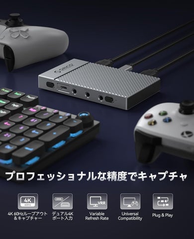 - 4K@60Hzの高画質録画・配信、低遅延、パススルー機能、HDR&VRR対応。