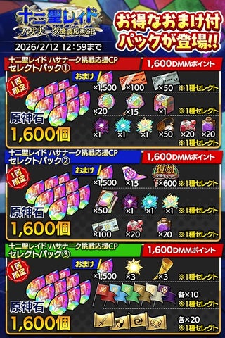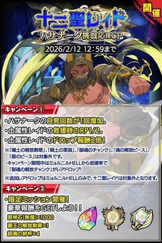- 「十二聖レイド ハサナーク挑戦応援キャンペーン」が開催。
