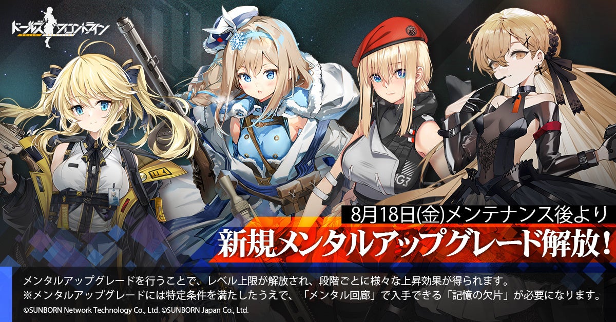 株式会社サンボーンジャパンは、スマートフォン向けの戦略型シミュレーションゲーム『ドールズフロントライン』において、新しいキャラクターのメンタルアップグレードを追加することを発表しました。