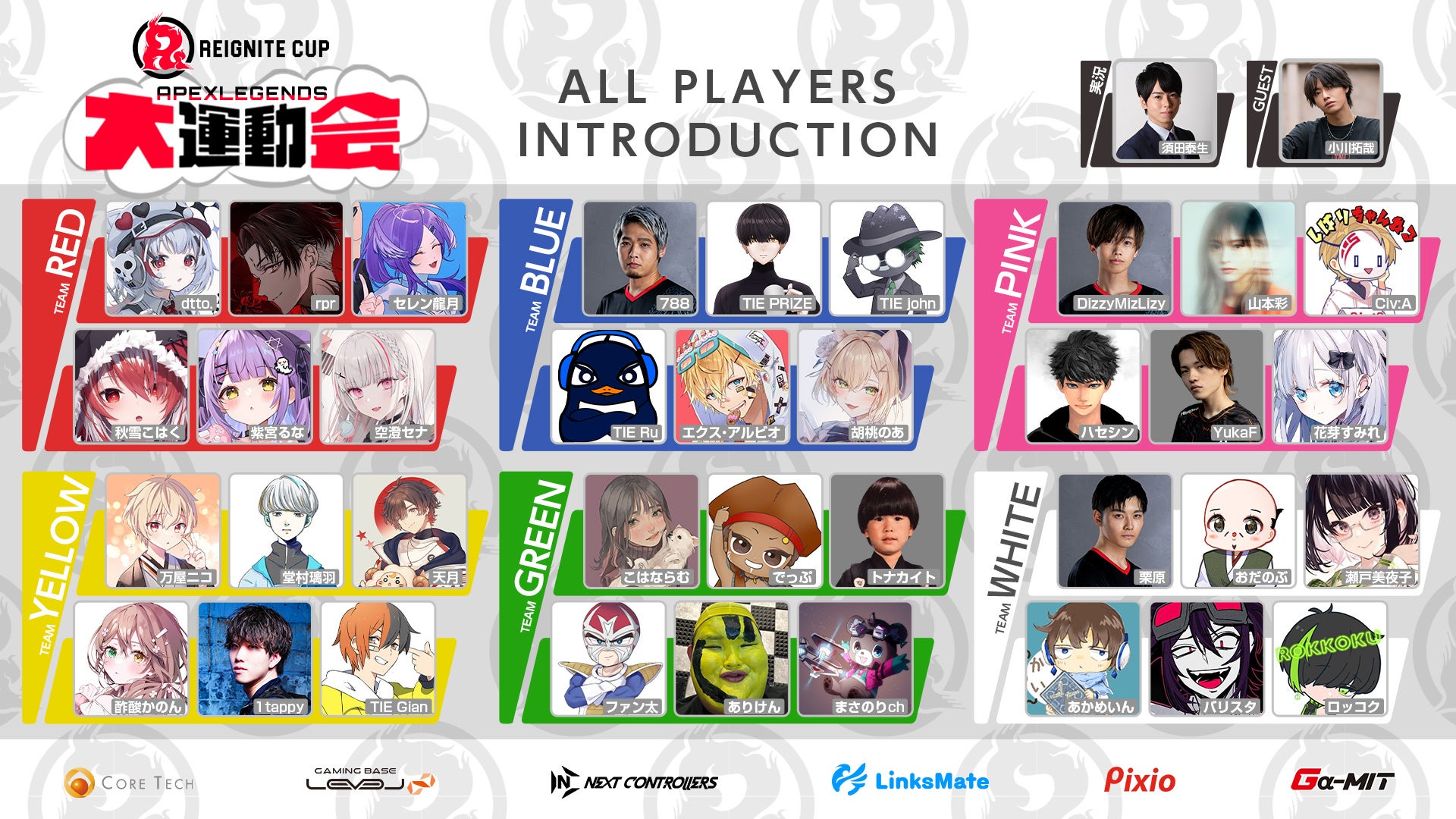 テーマは「Apex Legends大運動会」で、REIGNITE所属メンバーや人気インフルエンサーが団体戦で競い合います。