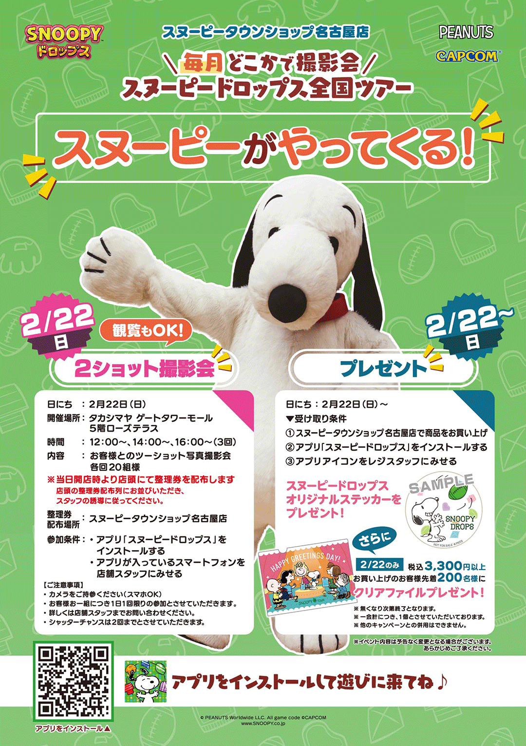 • 2月はスヌーピータウンショップ 名古屋店で撮影会。参加者には特典あり。