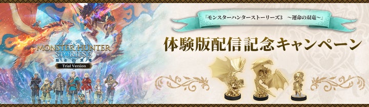 • 『モンスターハンターストーリーズ3 ~運命の双竜~』体験版配信記念キャンペーンが開催。