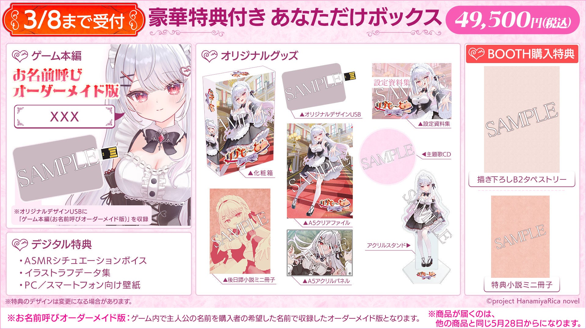 • 『あなただけボックス』は、ゲーム本編と関連グッズを詰め合わせたパッケージ商品。価格は49,500円(税込)。