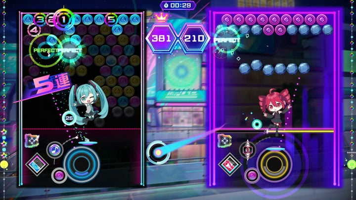 ゲームは、パズルと音楽ゲームをミックスしたリズミカルパズルゲームで、1人でも2人でも、オンライン・オフラインで対戦や協力プレイを楽しめます。
