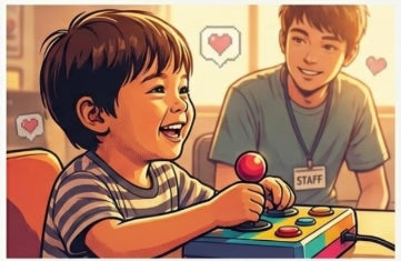 100円ガチャでチケットを入手し、生徒制作のオリジナルゲームをアーケードコントローラーでプレイできる。