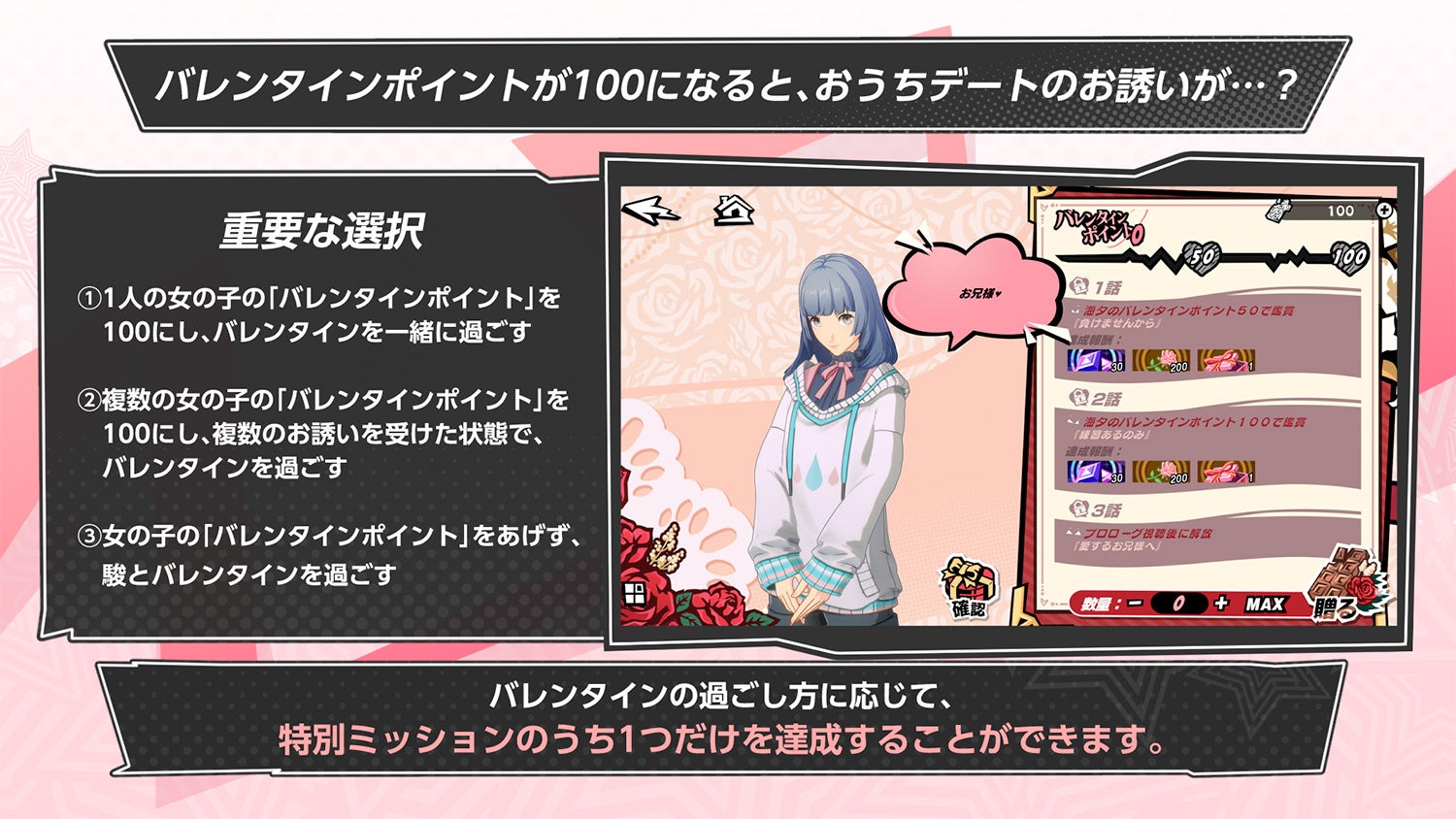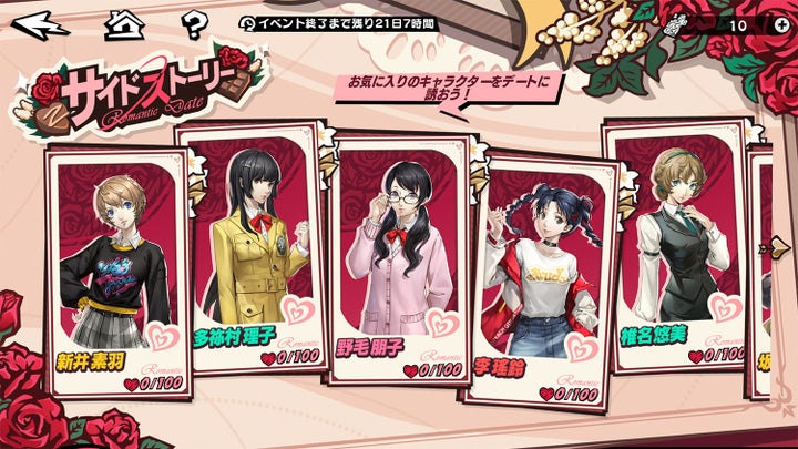 イベントでは、バレンタインにちなんだストーリーやキャラクターとのサイドストーリーを楽しめます。