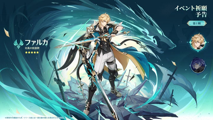 「ファルカ」は、CVを杉田智和さんが務め、風元素と両手剣を使い、二刀流スタイルで2種類の元素ダメージを与えることができます。
