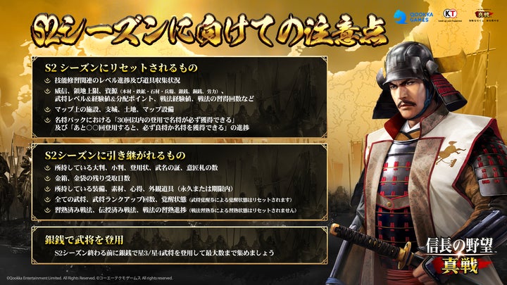 Qookka Gamesが開発し、コーエーテクモゲームスの『信長の野望・新生』を公式ライセンス取得したスマホゲーム『信長の野望 真戦』のS2シーズンが2026年2月28日に開幕します。