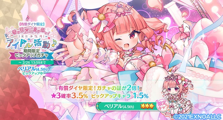 • 限定キャラ「★3 ルシフェル(4.5th)」と「★3 ベリアル(4.5th)」が登場するガチャも実施。