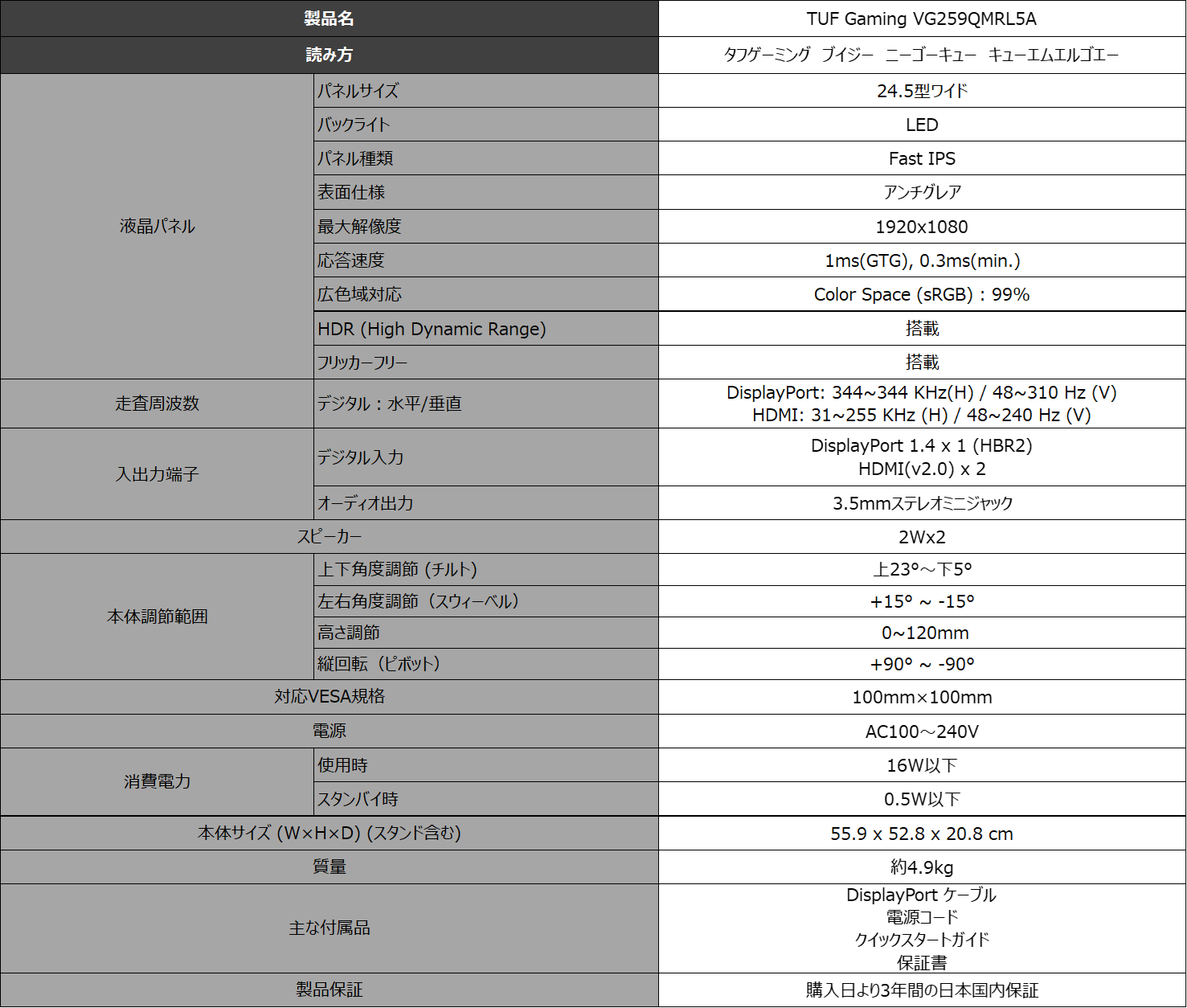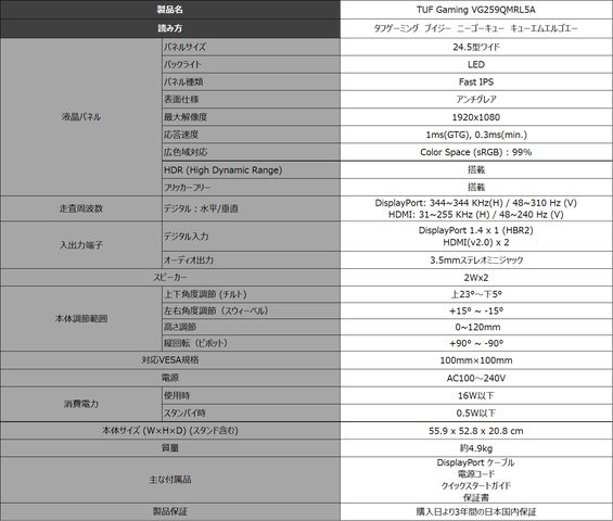 - TUF Gaming VG259QMRL5A