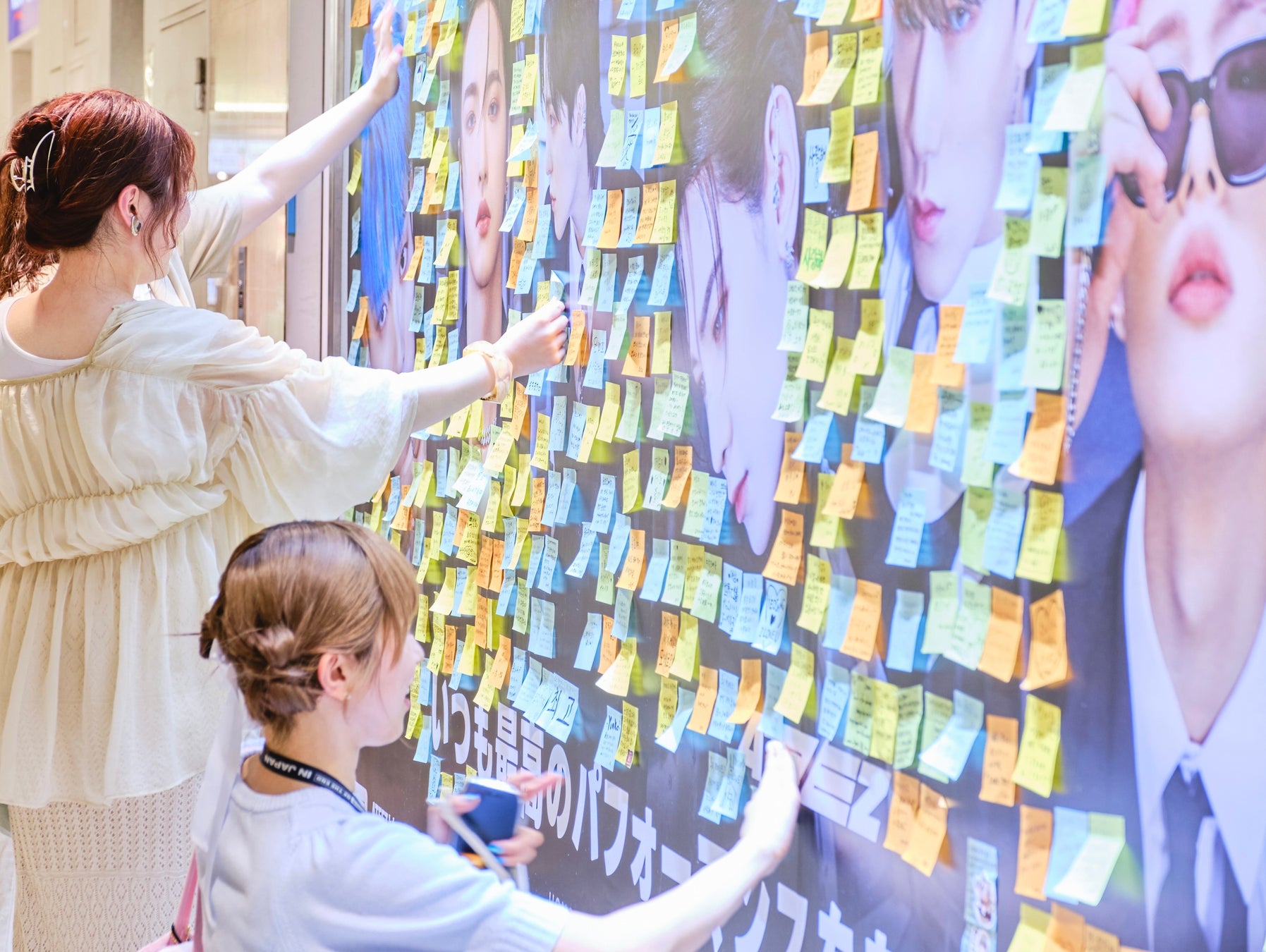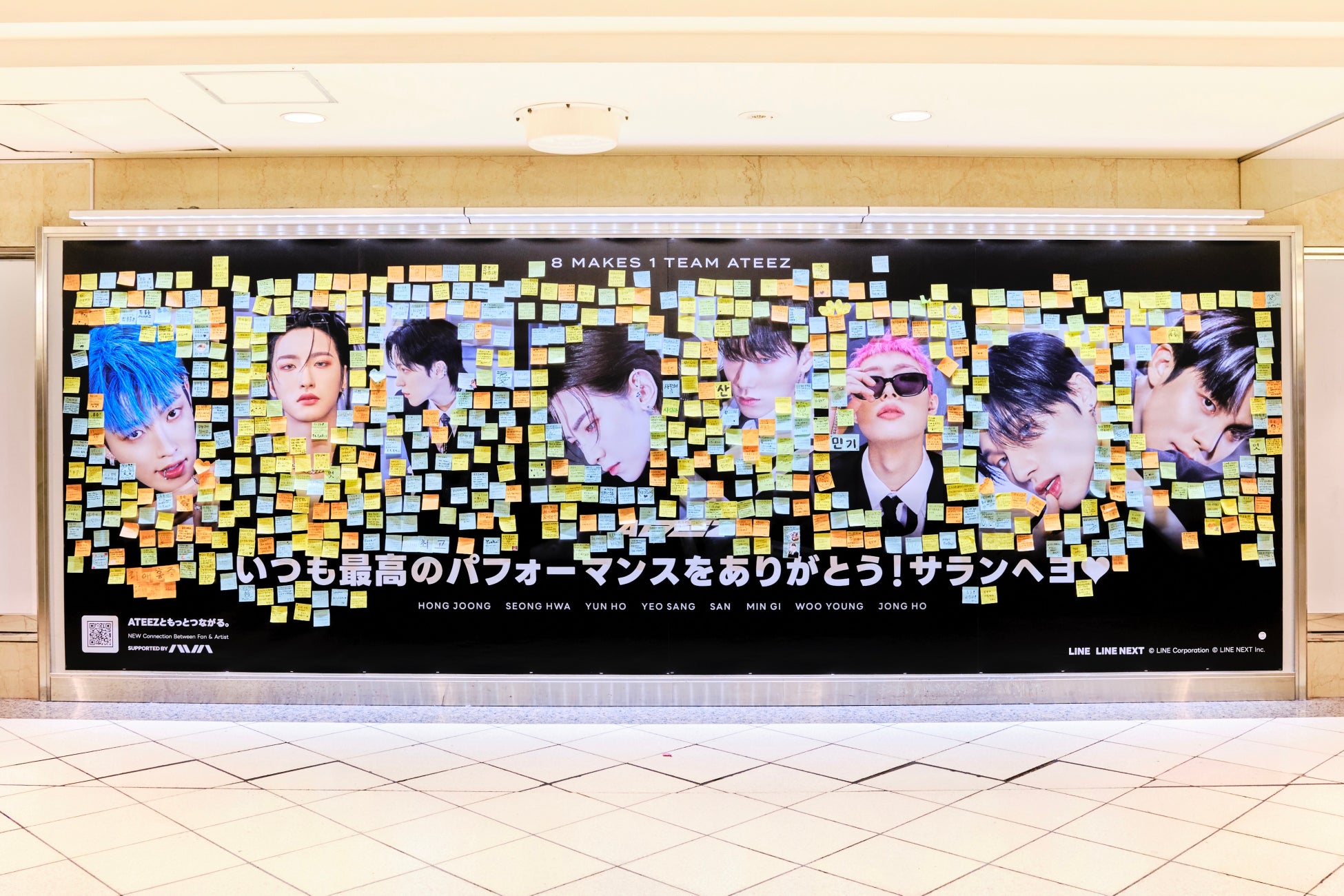 また、池袋駅ではATEEZへの応援メッセージを付箋で書き残すことができるイベントも開催され、たくさんのメッセージが広告を埋め尽くしました。