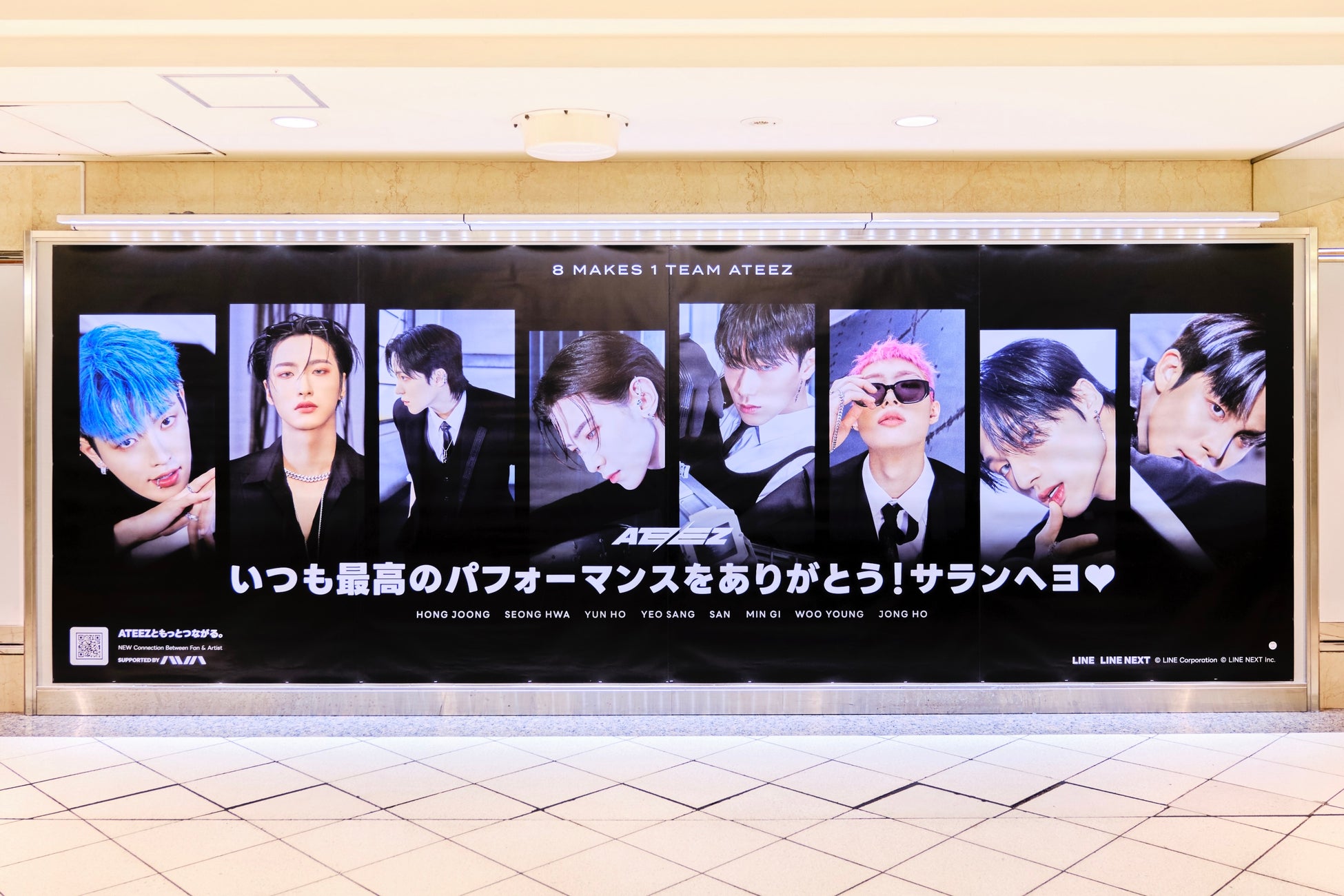 新宿駅と池袋駅にはATEEZの写真とファンからのメッセージを添えた巨大広告を掲出しました。