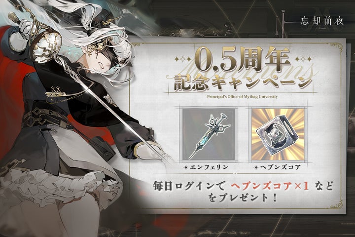 - 『忘却前夜』がサービス開始0.5周年を記念し、ハーフアニバーサリーキャンペーンを開催。