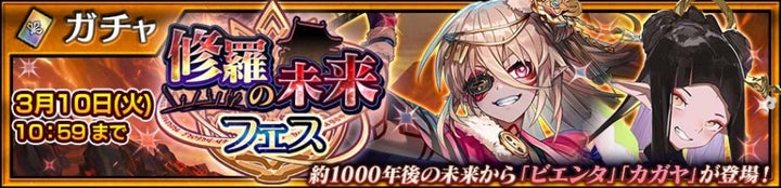 これを記念し、「ビエンタ(CV:佐倉綾音)」と「カガヤ(CV:遠藤綾)」が登場する“修羅の未来フェス”を開催。