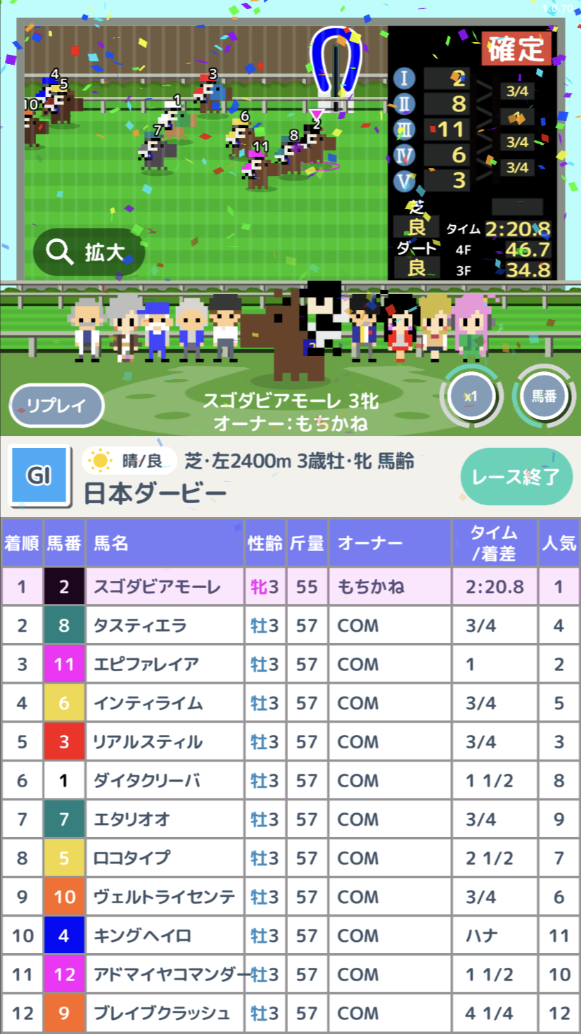 - 16年の開発期間を経て、GoogleのAI技術を活用して制作されたスマートフォン向け競馬ゲーム。