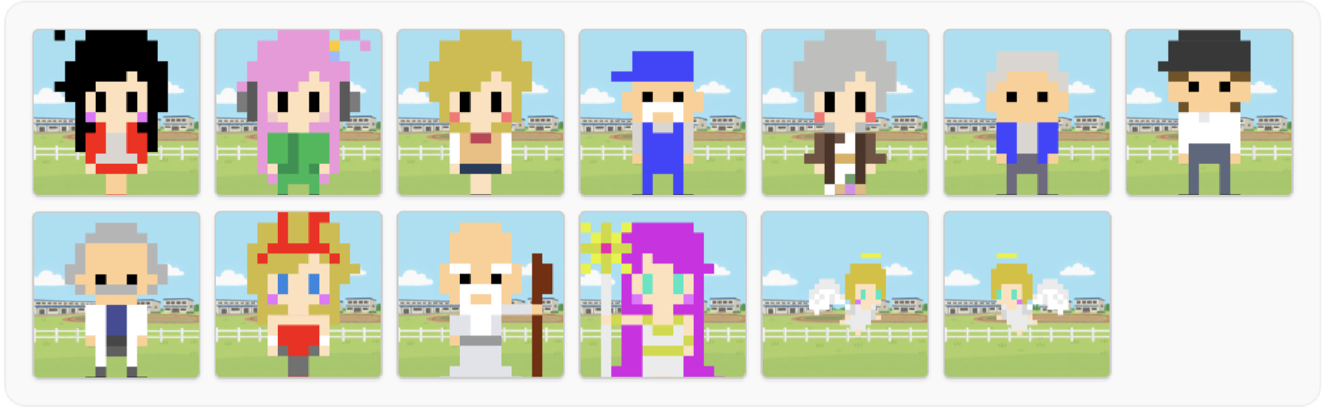 ドット絵で描かれる個性豊かなキャラクターが登場し、ガチャや配合を廃止した「厳選」と「継承」による育成が特徴。