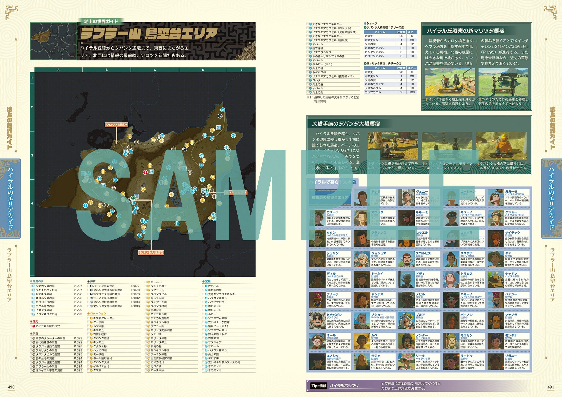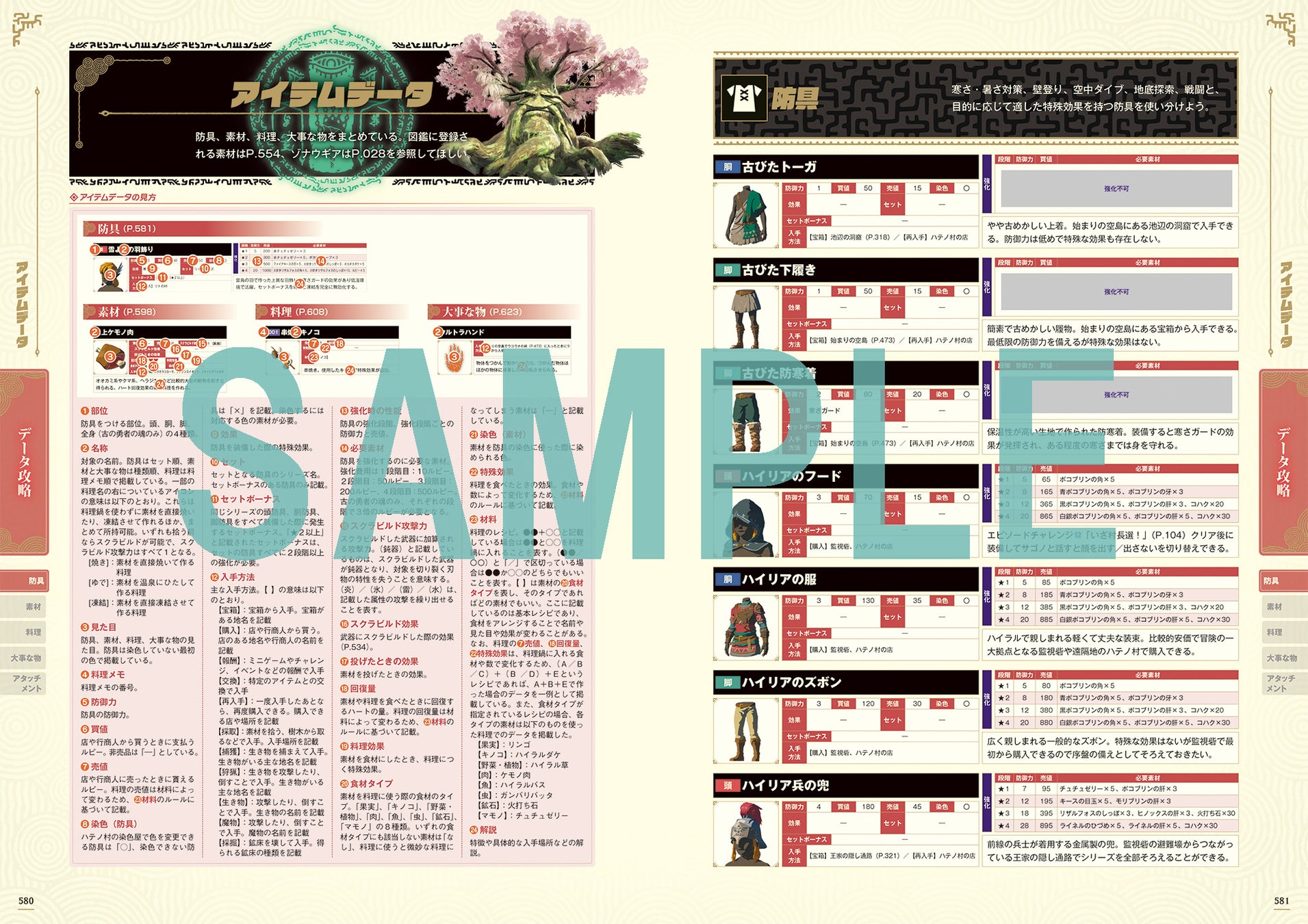 さらに、広大なエリア情報やデータ関連も充実しており、ハイラル全世界の地名リストや配置情報、アイテムの詳細データが170ページ以上で公開されます。
