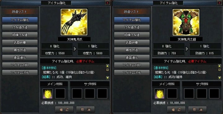 - 『新・天上碑』に二次神器装備「天神鬼月」が登場。武器と防具があり、製作や強化が可能。