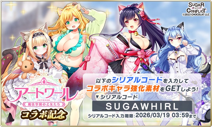 PCブラウザ・スマホアプリゲーム『シュガーコンフリクト -眠るセカイと神々の喰園-』と『アートワール』のコラボイベントが開催されます。