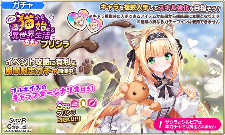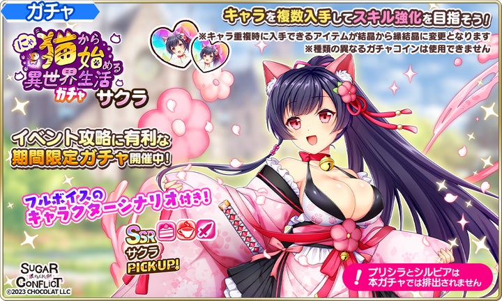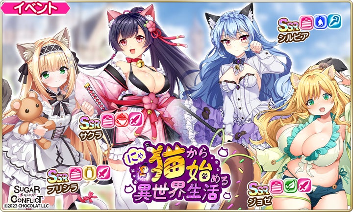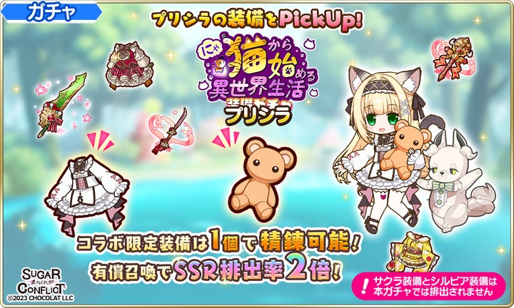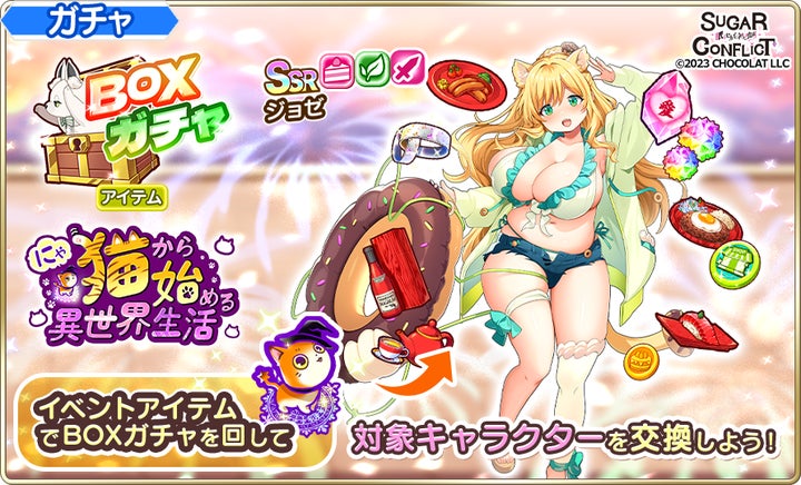 イベントクエストで育成素材が入手できるBOXガチャ、キャラの性能を上げる装備ガチャ、シリアルコード入力でアイテムプレゼントも実施。