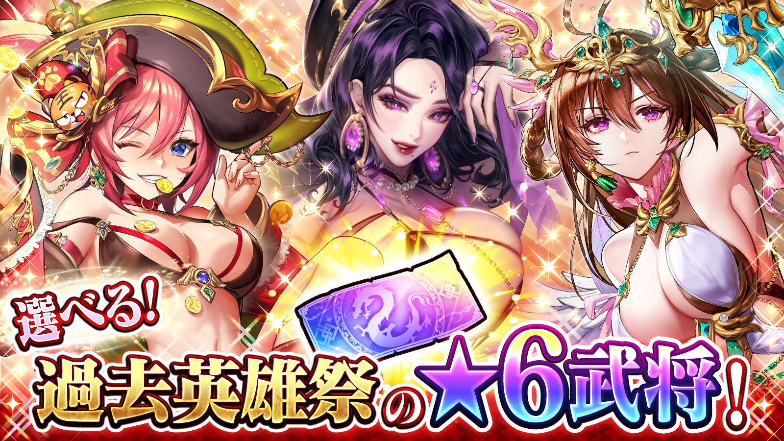 - 期間中、最大250連分の無料ガチャチケットプレゼントや★6英雄祭武将が無料で獲得可能。