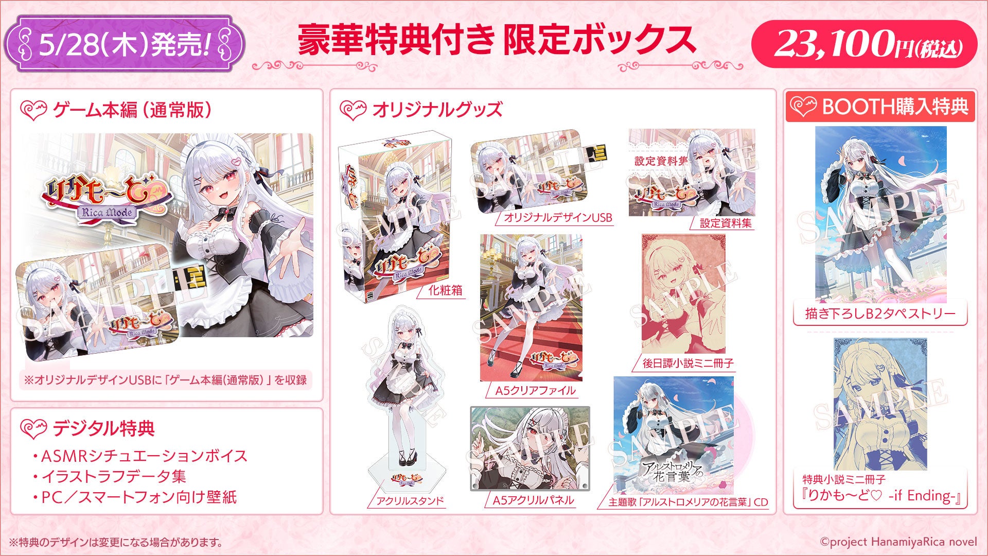 - VTuber「花宮莉歌」主演のASMR付きノベルゲーム『りかも~ど♡』の限定パッケージが予約開始。