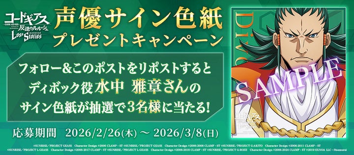 また、★4ディボック[ヴァイス・ルーク]役の声優、水中雅章さんのサイン色紙プレゼントキャンペーンも実施されます。