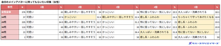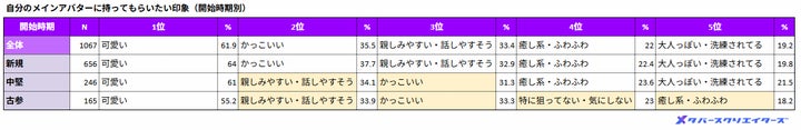 その結果、アバターに求める印象や選び方には世代差が見られ、若年層は「かっこいい」を、上の世代は「親しみやすさ」を重視する傾向があることが判明しました。