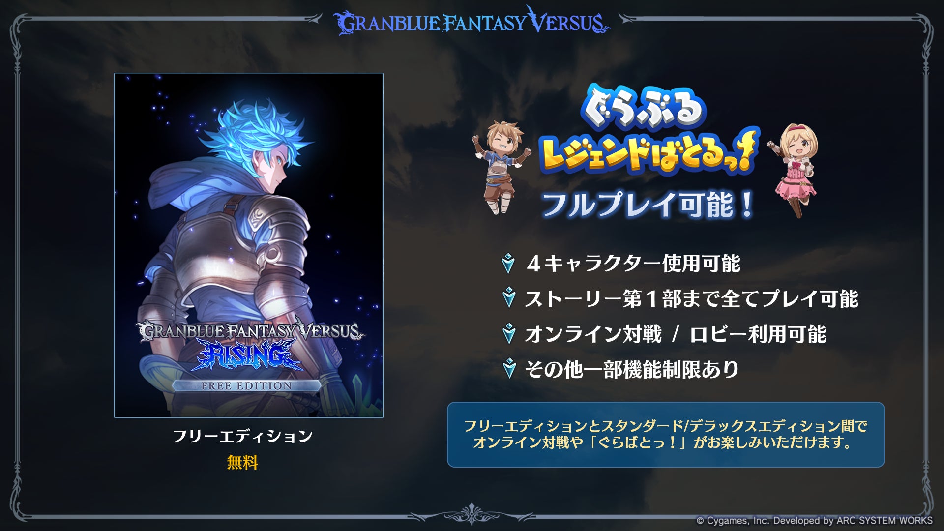 『GBVSR』は3つのエディションで展開され、初心者から上級者まで楽しめる内容となっています。