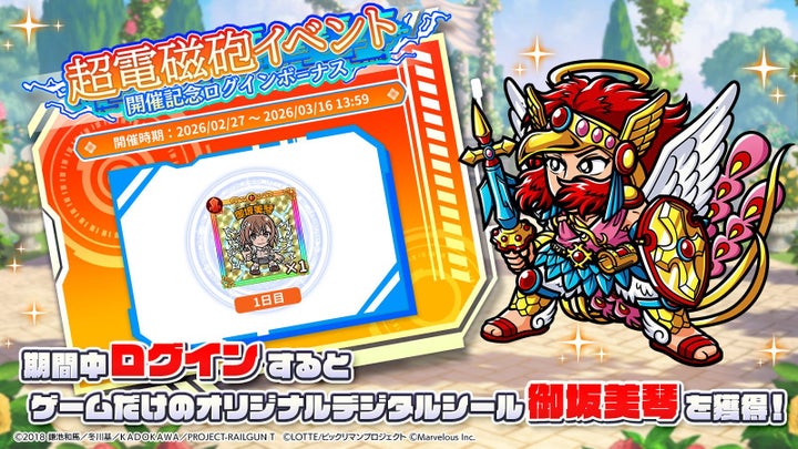 株式会社マーベラスより配信中のシールコレクションRPG『ビックリマン・ワンダーコレクション』にて、『とある科学の超電磁砲T』との特別イベントが2026年2月27日より開始された。