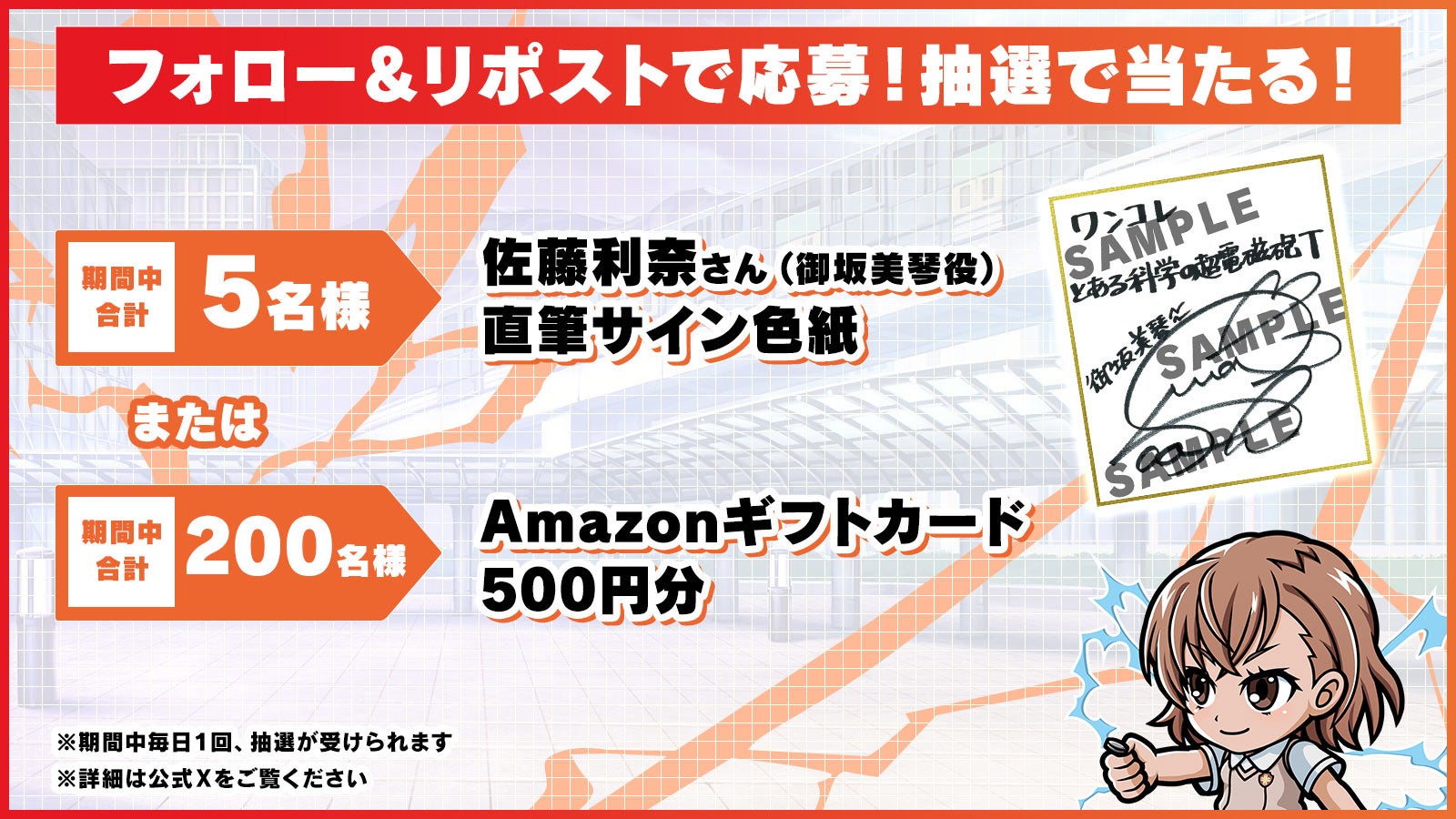 - ログインボーナスとして、ゲーム内デジタルシール「御坂美琴」やガチャチケットが配布される。