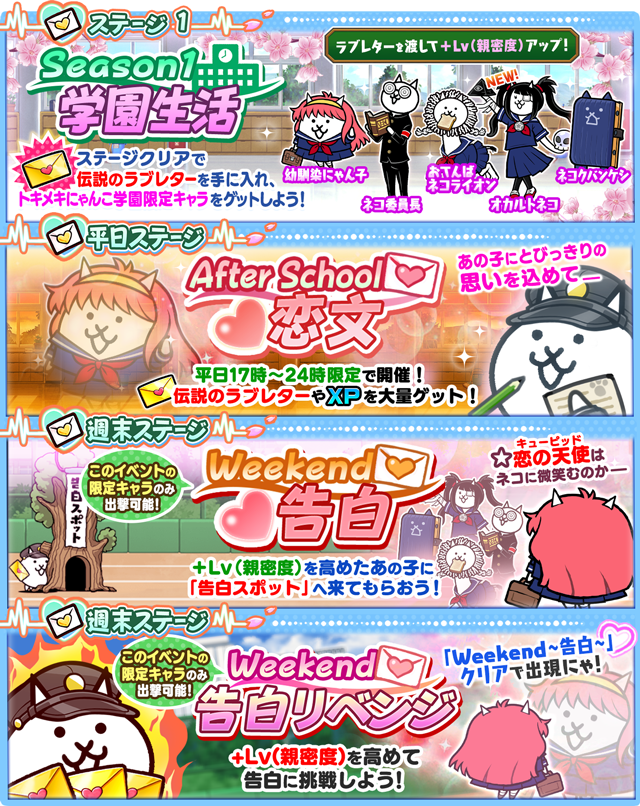 - 期間限定イベント「トキメキにゃんこ学園」が開催。