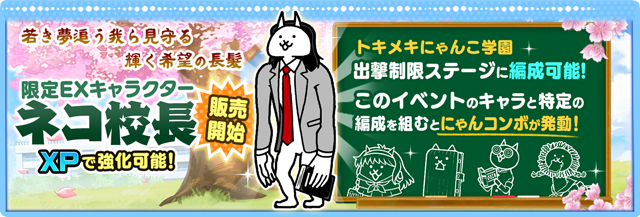 - 限定EXキャラ「ネコ校長」販売、2種類のログインスタンプキャンペーン実施。