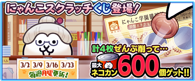 イベント期間中は、毎週ネコカンが手に入るスクラッチくじや、限定ステージが登場。