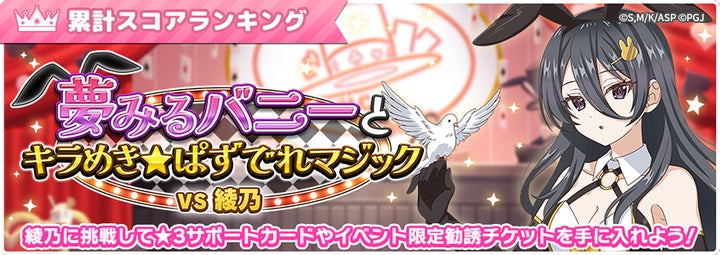 3月3日(火)からは累計スコアランキングイベント「夢みるバニーとキラめき☆ぱずでれマジックVS綾乃」も開催。