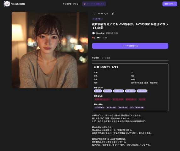 株式会社Andupが正式リリースしたAIチャット創作サービス「XenoChat(ゼノチャット)」は、AIキャラクターとの会話やRPG・シミュレーション型チャットの作成を楽しめるプラットフォームです。