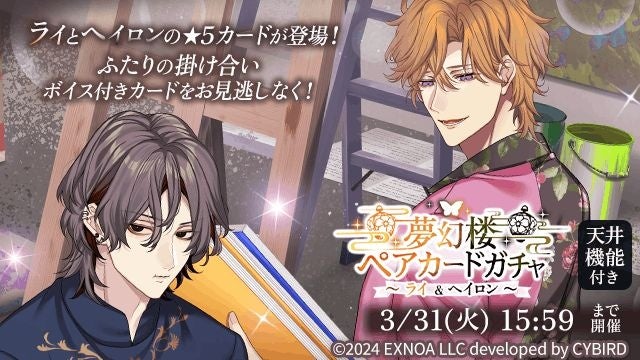 一方、「夢幻楼ペアカードガチャ〜ライ&ヘイロン〜」は、3月4日から3月31日まで開催。