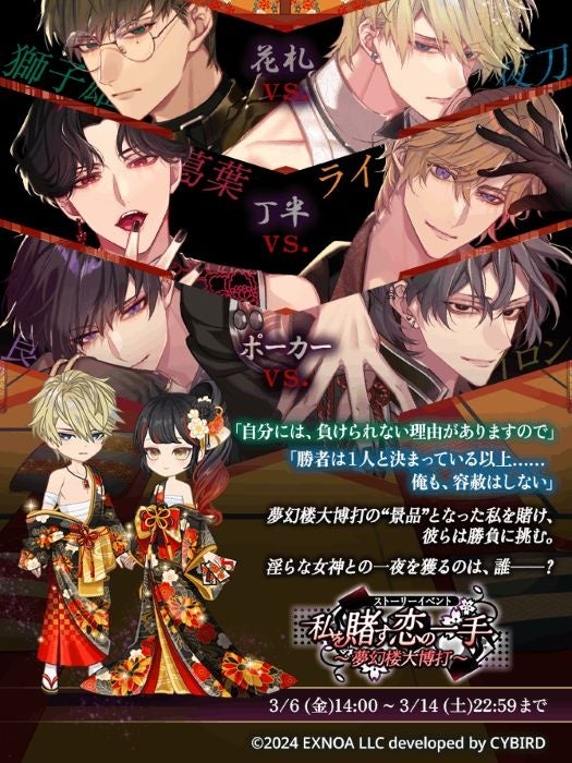 イベント「私を賭す恋の一手~夢幻楼大博打~」は、3月6日から3月14日まで開催され、限定ストーリーやアイテムを獲得できる。