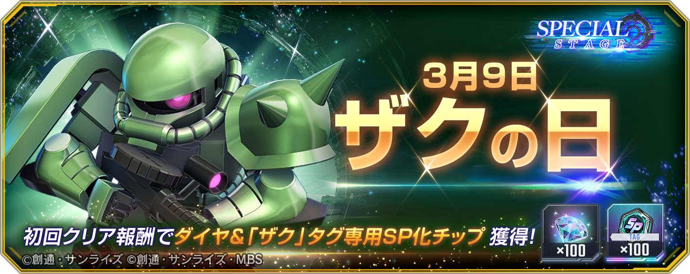 - 3月9日の「ザクの日」を記念した期間限定スペシャルステージを開催中。
