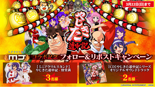 セガのネットワーク対戦麻雀ゲーム『セガNET麻雀 MJ』シリーズと『Pやじきた道中記』のコラボイベント”Pやじきた道中記CUP”が2026年3月9日より開催されます。
