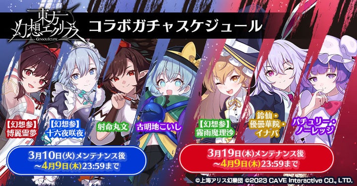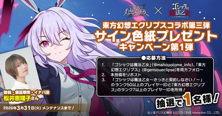 ケイブが配信するシューティングゲームアプリ『ゴシックは魔法乙女~さっさと契約しなさい!~』(ごまおつ)と『東方幻想エクリプス』のコラボイベントが3月10日(火)より開催。