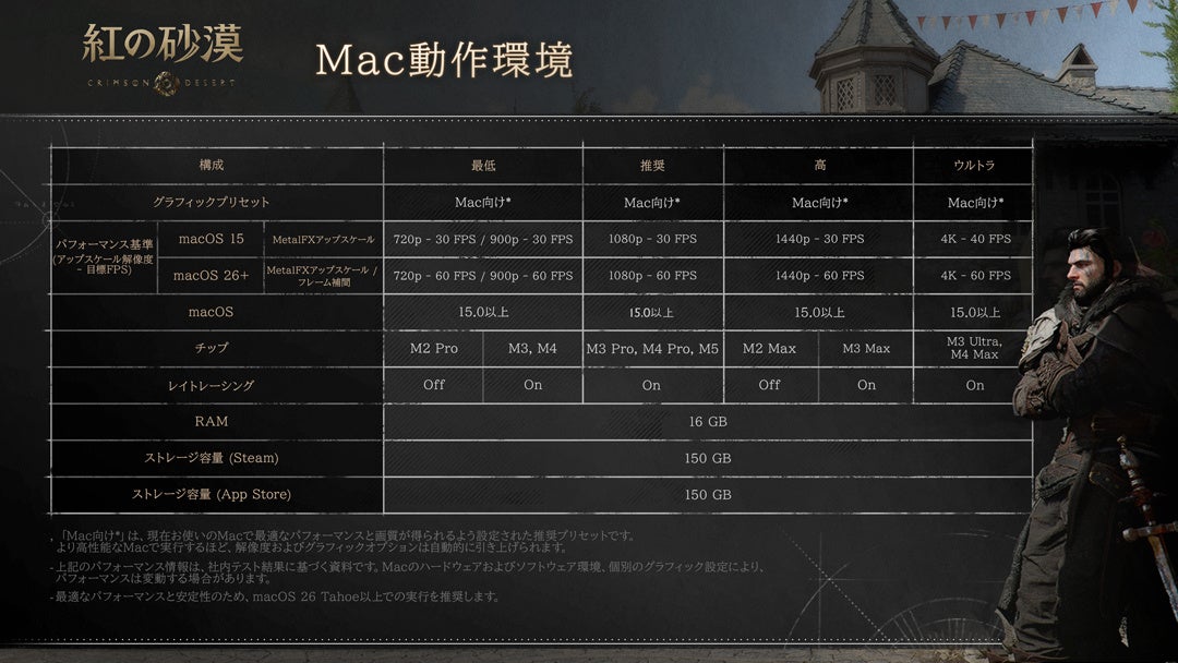 Pearl Abyss Corp.は、オープンワールドアクションアドベンチャー『紅の砂漠(Crimson Desert)』のPCおよびコンソール版の性能情報を公開。