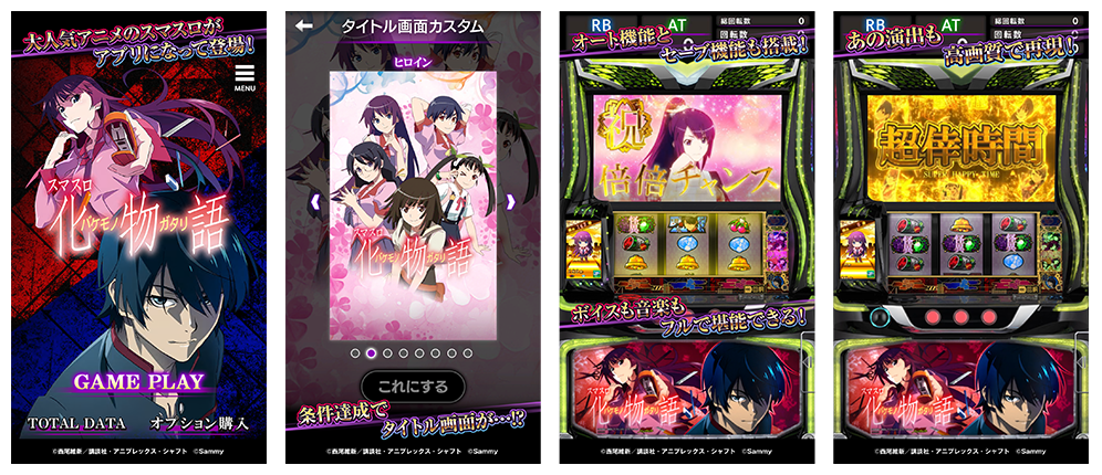 - 大人気パチスロ機「スマスロ 化物語」のスマホアプリがリリース。