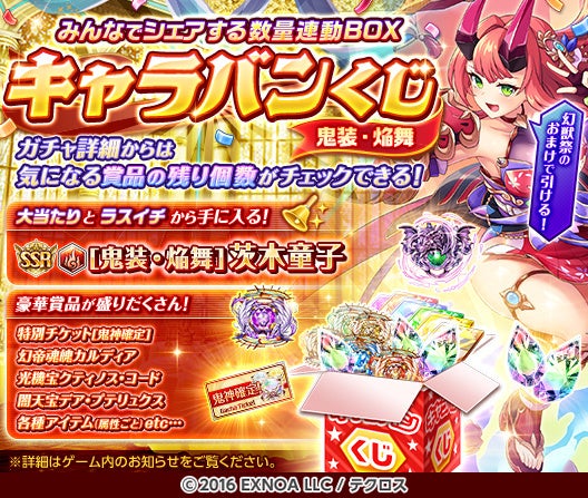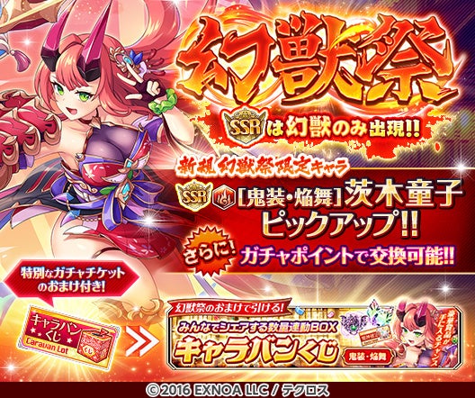 - 1日1回無料10連ガチャや、幻獣祭、キャラバンくじ、プレミアムパス特典更新、ワンコインガチャなど、様々なイベントを実施