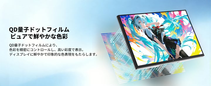 量子ドット技術により、sRGB 99%、DCI-P3 98%の広色域を実現。