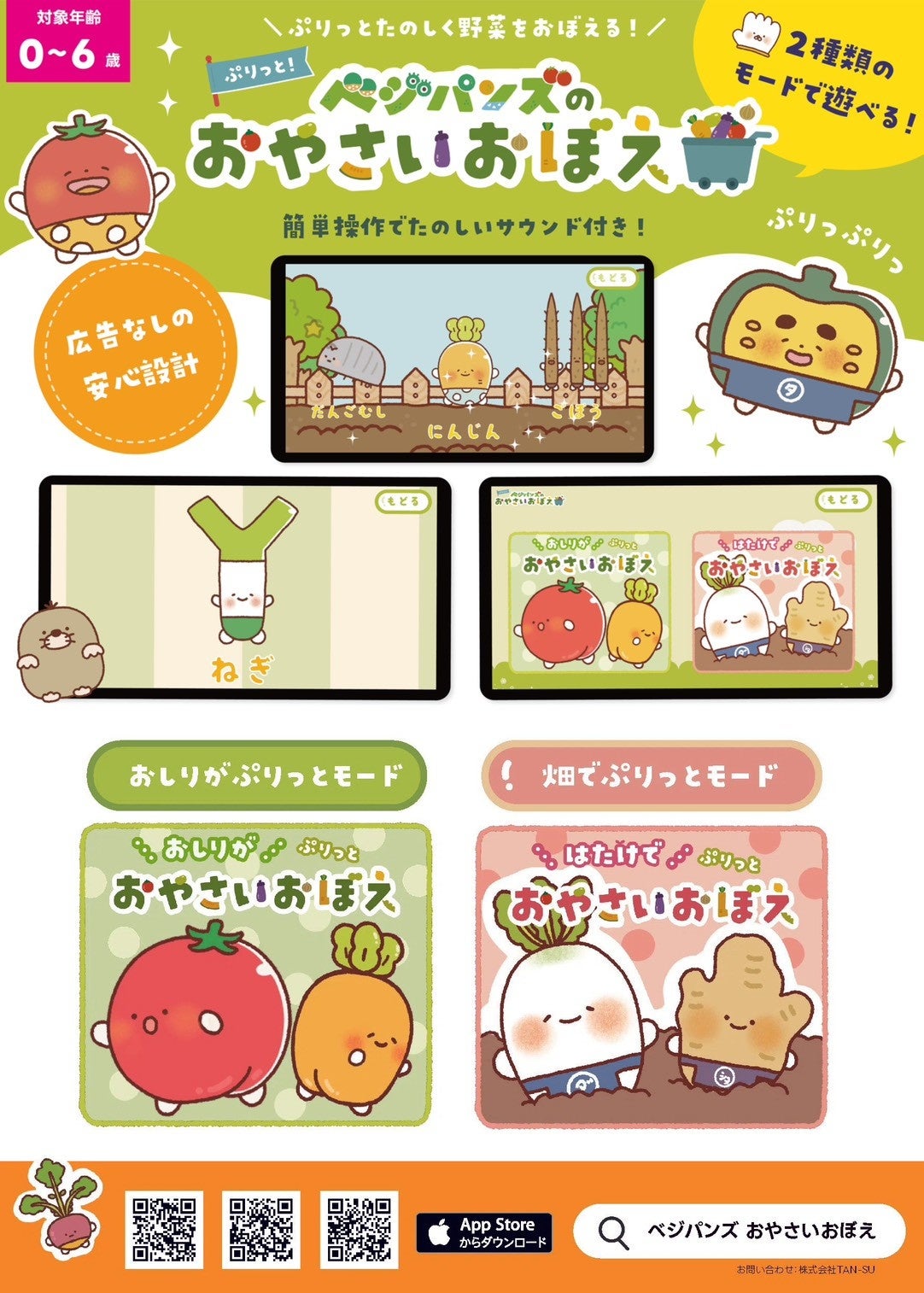 株式会社TAN-SUより、幼児向け食育ゲームアプリ「ベジパンズのおやさいおぼえ」が2026年3月6日(金)にリリースされました。