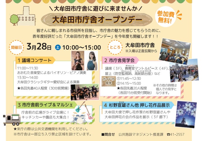 さらに、大牟田市庁舎オープンデーでは、議場コンサートや市庁舎見学会が行われる。