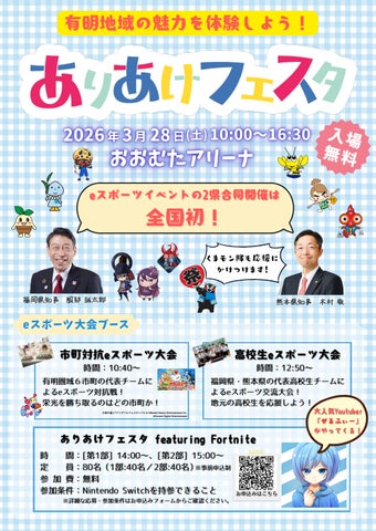 - 3月28日に大牟田市で「ありあけフェスタ」を含む4つのイベントが開催。